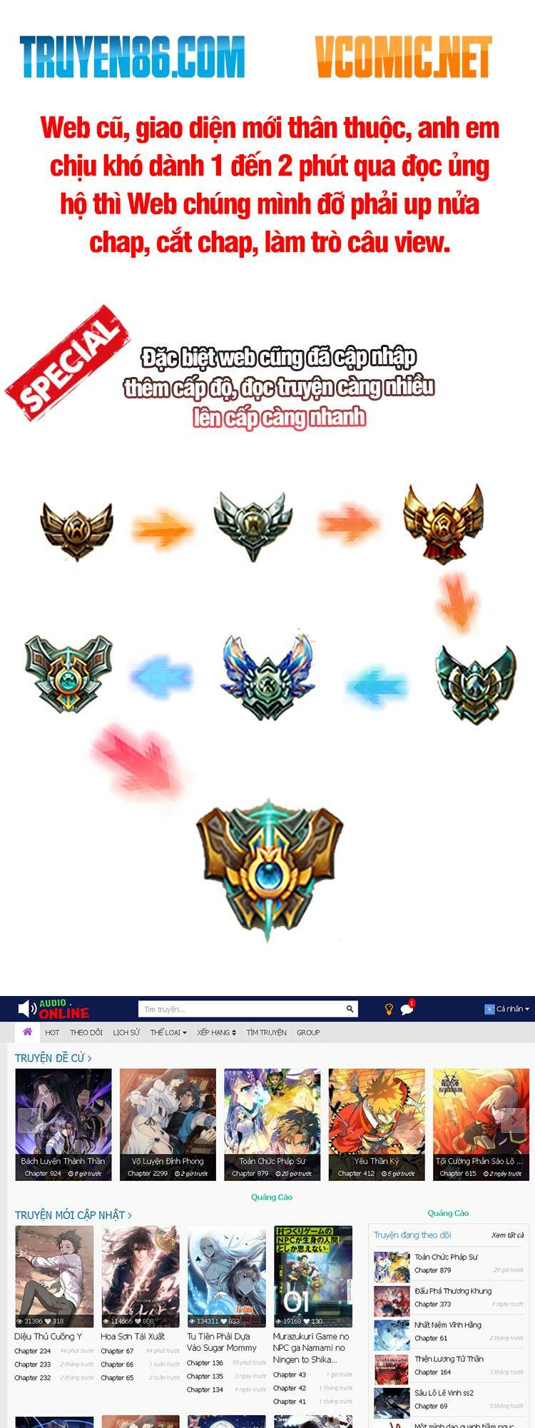 Sử dụng mũi tên trái (←) hoặc phải (→) để chuyển chapter